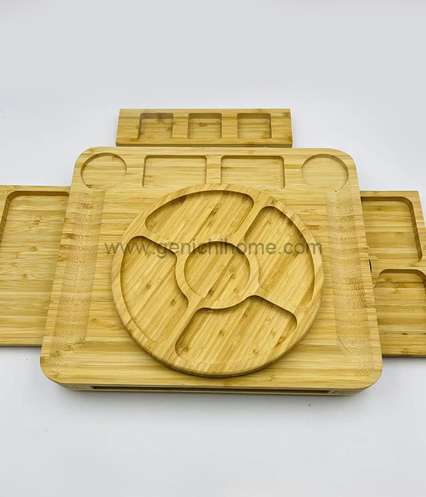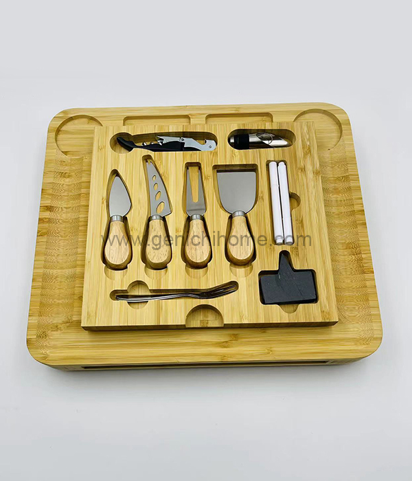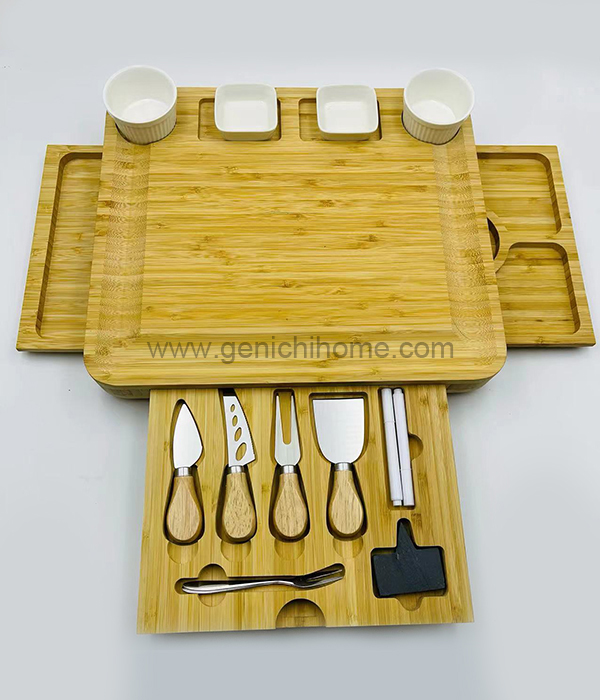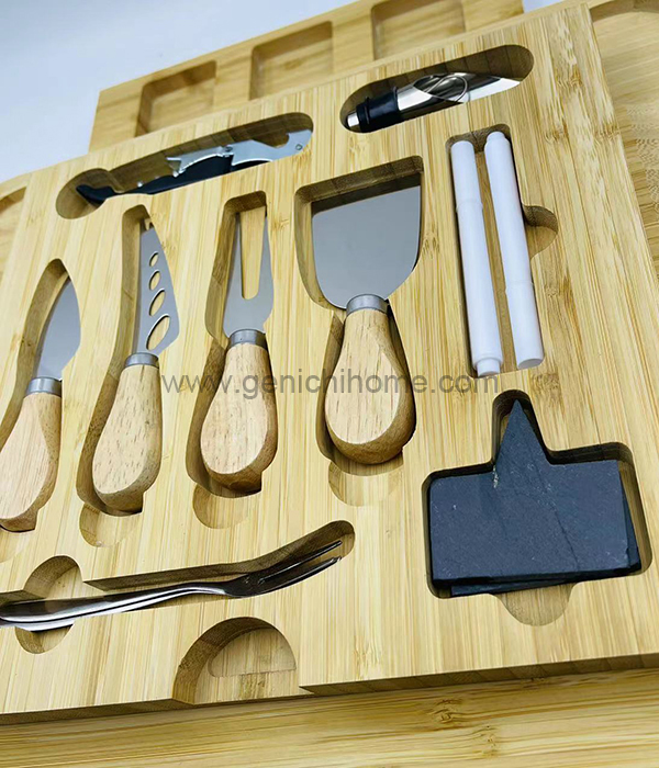 Imagine effortlessly slicing through your favorite cheeses with our stainless steel cheese knives, ly spreading them with our chic wooden cheese spreaders, and serving them with style using our sleek cheese forks - all conveniently tucked away in the cheeseboards built-in drawer. এই সেটটি সহ, আপনার নিজের এবং আপনার অতিথিদের জন্য একটি অবিস্মরণীয় পনির স্বাদ গ্রহণের অভিজ্ঞতা তৈরি করার জন্য আপনার নখদর্পণে আপনার প্রয়োজনীয় সমস্ত কিছুই আপনার কাছে থাকবে e